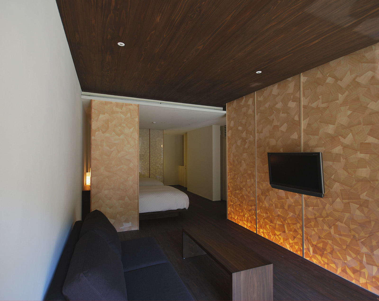 The modern room (with a western-style bed) has its own open-air bath made of local Kumano-sourced cedar, cypress, and bamboo.